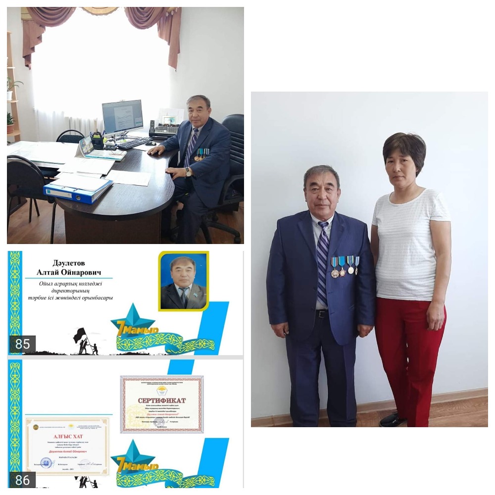 In honor of the celebration of May 7 – Defender of the Fatherland Day, veterans who performed international duty in Afghanistan and Deputy Director for Educational Work Dauletov Altay Oynarovich, who performed military duty at the Semipalatinsk nuclear test site, were awarded a joint letter of thanks from the regional Department of Education and the Trade Union of Education and a referral to the Sarygash medical and wellness center.