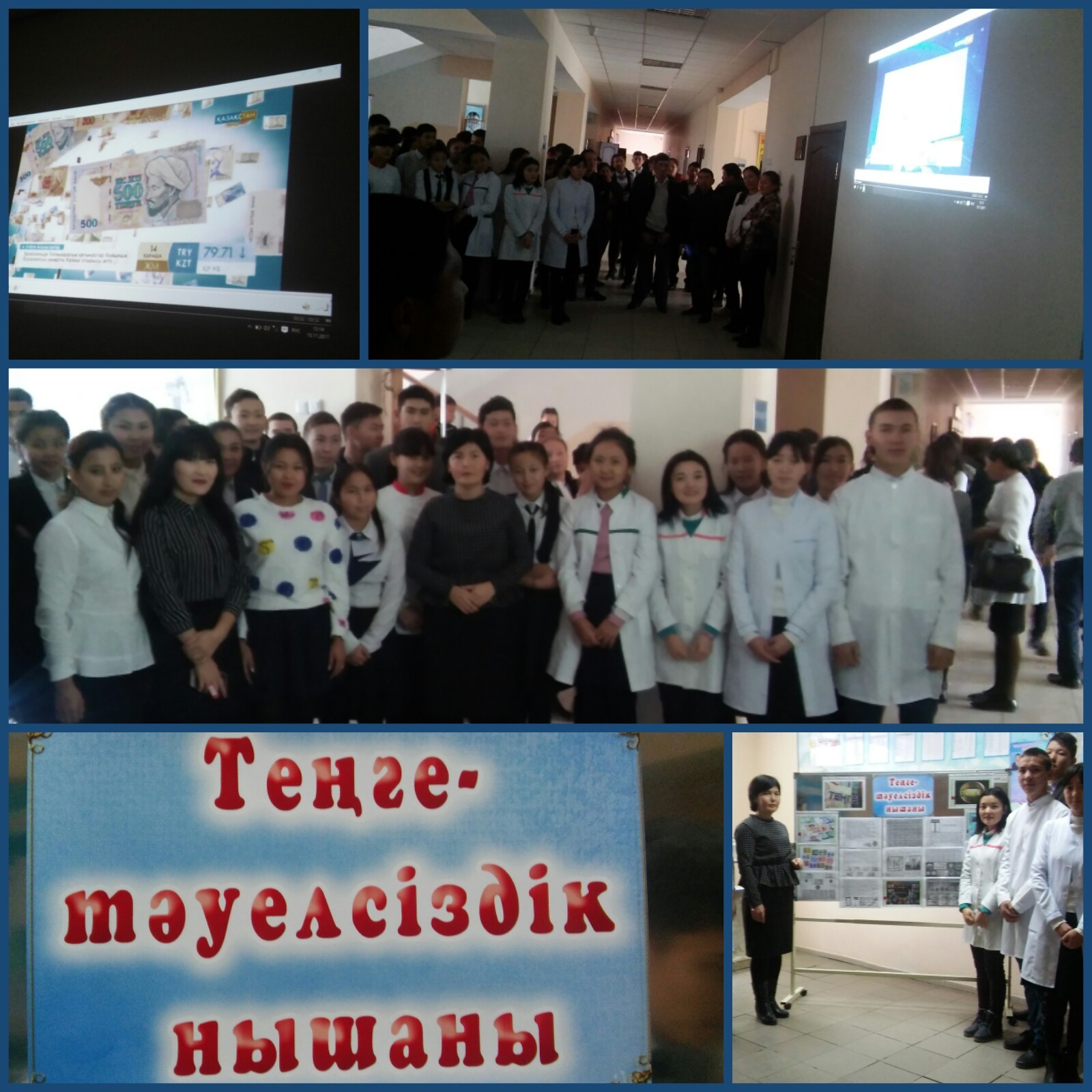 Ұлттық валюта күнінен орай Ойыл аграрлық колледжінде арнаулы пән оқытушысы Майгүл Жомартқызының ұйымдастырумен студенттерге «Теңге- тәуелсіздік нышаны» атты видеоролик көрсетіліп, қабырға газеттері таныстырылды.