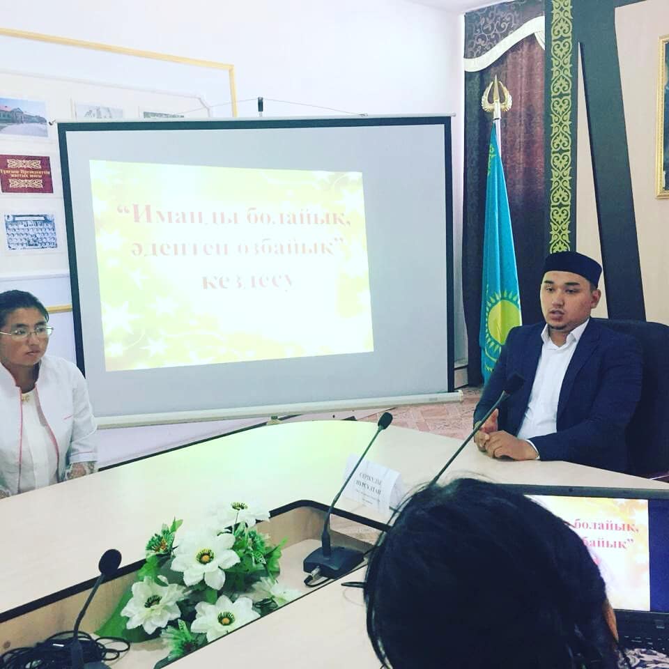 3-қазан күні колледж психологы Саркенаева Айдана Рухани жанғыру бағдарламасы аясында "Иманды болайык,әдептен озбайык" атты Ойыл аудандык мешітінің бас имамы Серикулы Нурсултанмен кездесу өткізді. Студенттер көкейлерінде журген сұрактарын қойып, мардымды жауап алды.