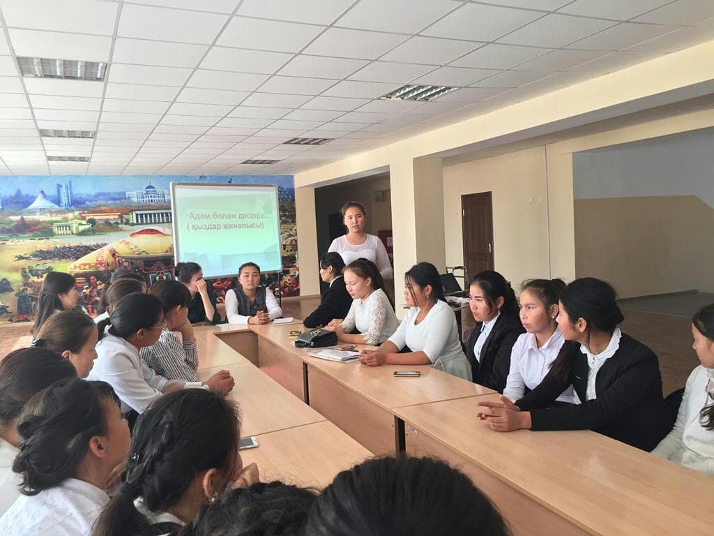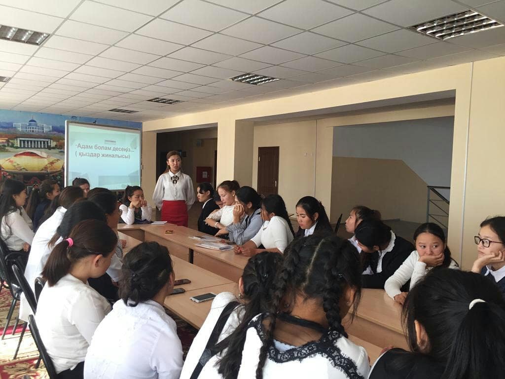 Халықаралық қыздар күні онкүндігі аясында Колледж психологы А.А.Саркенаева мен "Айкөркем" қыздар клубы жетекшісі Г.С.Ақнұржанованың ұйымдастыруымен "Адам болам десеңіз..." атты колледжішілік жалпы қыздар жиналысы өтті. Жиналыста қыздармен тренинг ойнатылып,қоғамдағы қыз бала тәрбиесінің маңыздылығы ортага салынып,талқыланды.