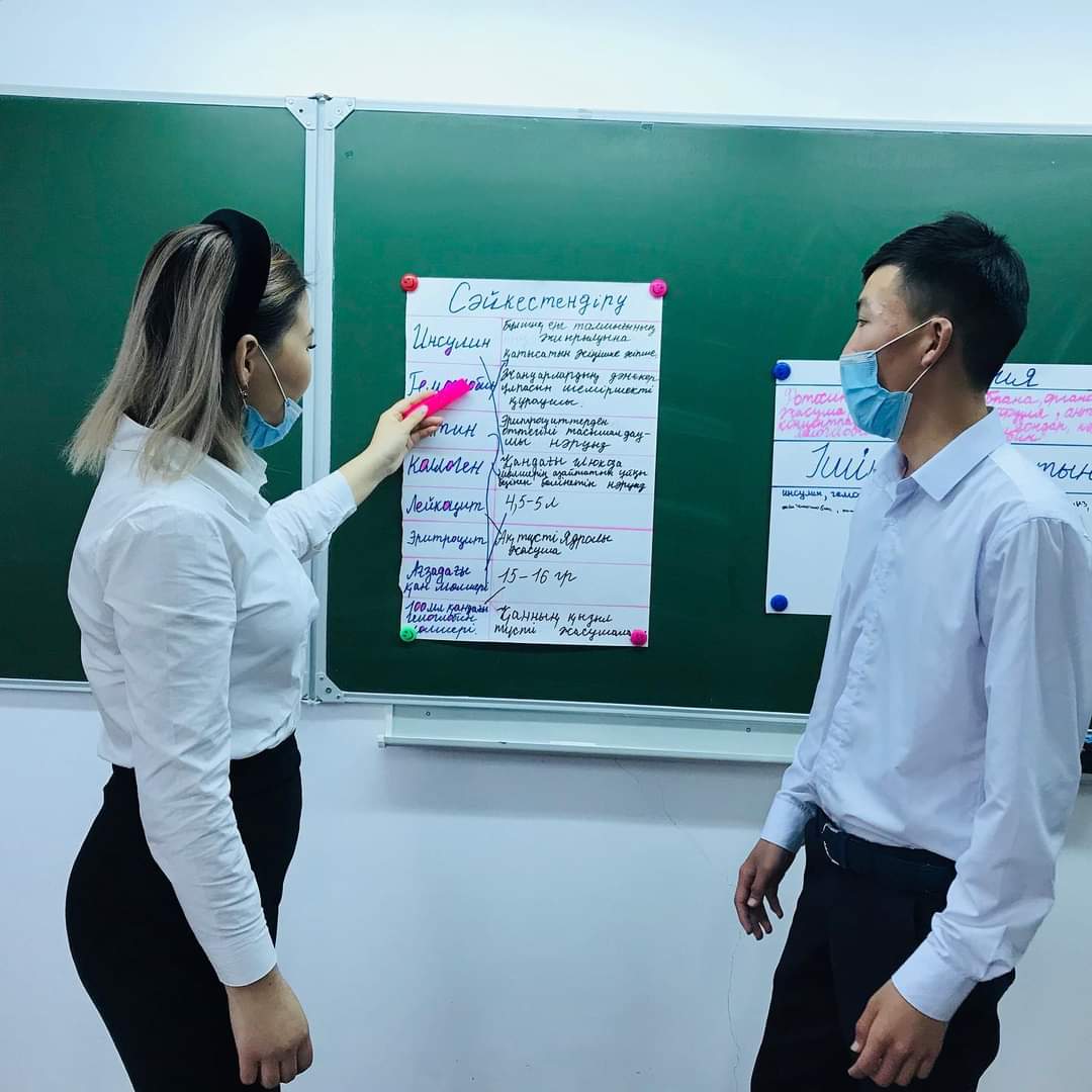 Колледждің жас мамандары арасында «Білімдінің күні жарық» атты онкүндік апталығы аясында Биология пәнінің оқытушысы Нұралы Жансая Ергенқызы І курс «Ветеринария» мамандығының студенттеріне «Адам гемоглобині мен миоглобинінің құрылысы мен қызметі» тақырыбында ашық сабақ өткізді.