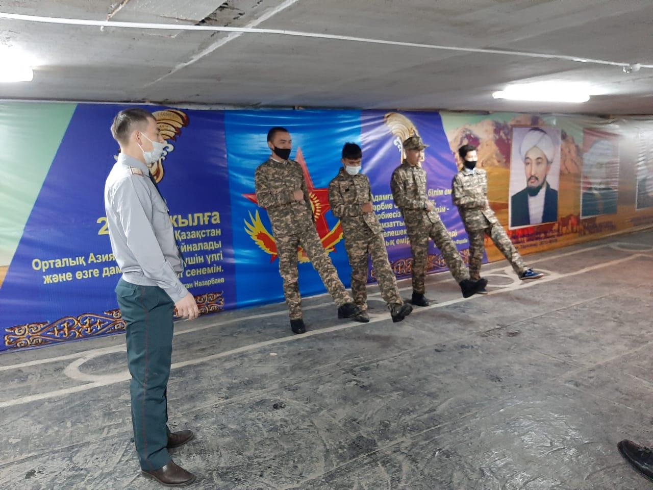 Жалпы білім беретін пәндер апталығы аясында І курс 102 топ “Ауыл шаруашылығын механикаландыру мамандығының студенттеріне “Саптық жаттығулар, бұрылу, бір қатарлы саптан екі қатарлы сапқа және кері қайта сапқа тұру” тақырыбында ашық сабақ өткізді.