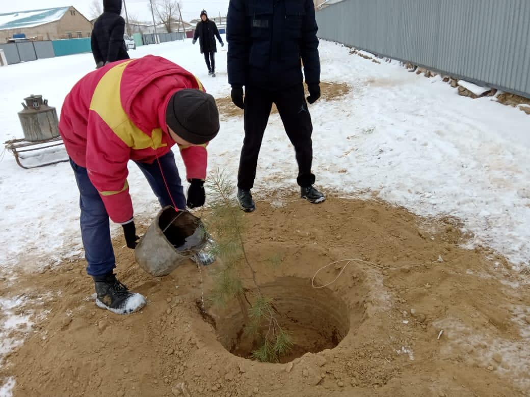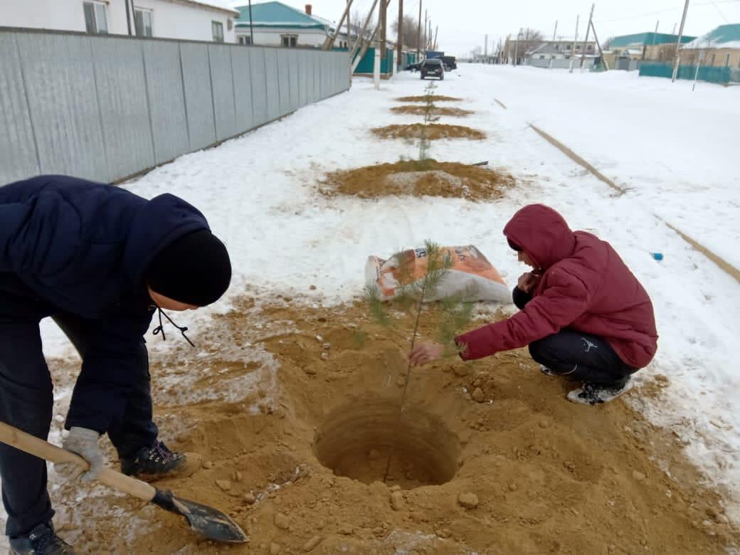 Колледж волонтерлары Туған жерді гүлдендіру мақтасында Абай көшесіне тал отырғызды.