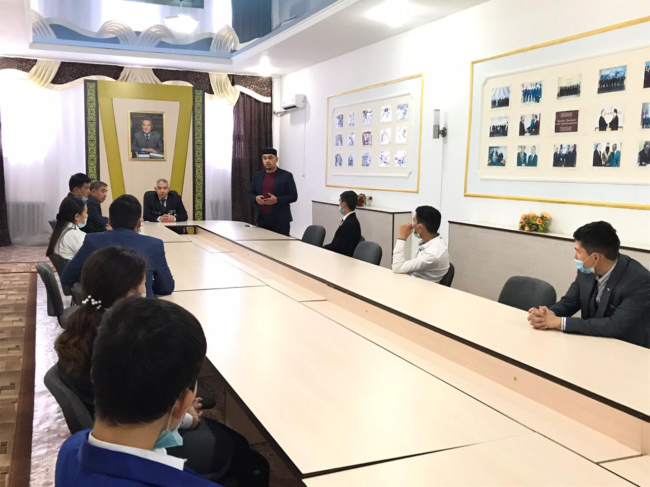 Кездесу барысында студенттерді тәрбиелік мәні бар, білікті білімді, бәсекеге қабілетті өз ісін жетік білетін маман болуға шақырумен қатар, елінің, өз туған жерінің патриоты болуға лайықты қасиеттерді қалыптастыру бағытында кеңінен түсінік жұмыстары жүргізілді. Жиын барысында тәуелсіздік, патриоттық, тәрбиелік бағытта сұрақтар қойылып, студенттер берілген сұрақтарға толыққанды жауаптарын берді.