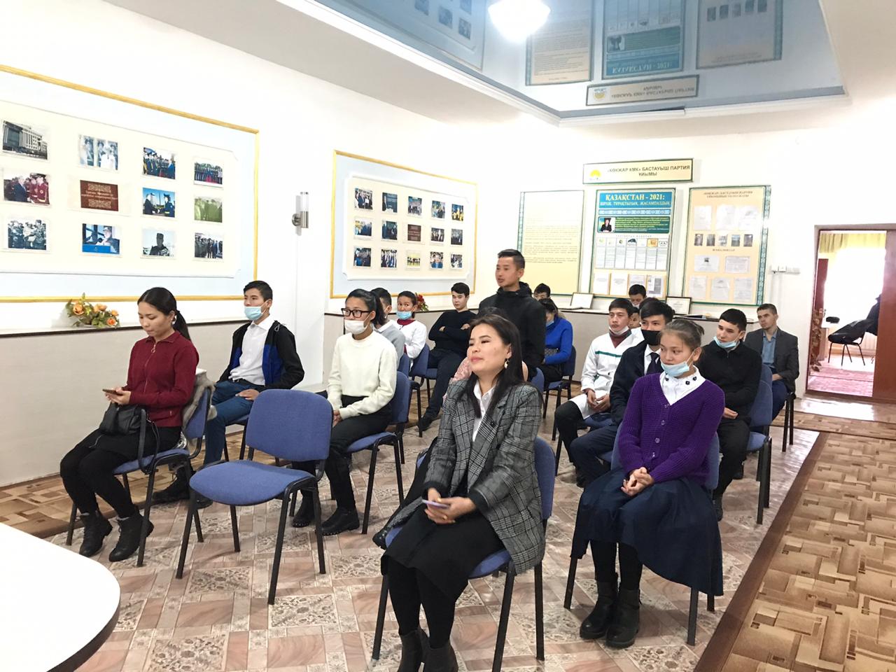 24 қараша күні “Нұр Отан” партиясы Ойыл аудандық филиалының желілік кестесіне сәйкес, 1-желтоқсан Қазақстан Республикасының Президенті күні қарсаңында “Ойыл аграрлық колледжі” МКҚК-ның Президенттік залында ауған соғысының ардагері Тоқпағамбетов Абай Қаленұлы, аудандық орталық мешітінің бас имамы Нұрсұлтан Серікұлы, жастар ресурстық орталығының психологы Жумин Нұрсұлтан Нұрланұлы студенттермен кездесу өткізді.
