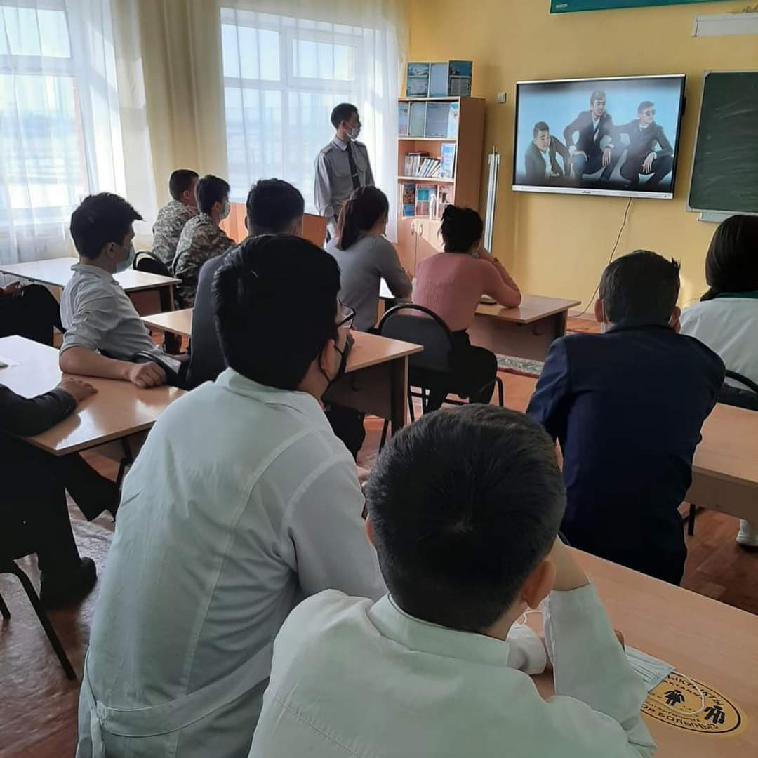 Құқықбұзушылықтың алдын алу клубының жетекшісі А.А.Ертлеуовтың ұйымдастыруымен 1-2 курс студенттеріне "Кәмелетке толмаған жасөспірімдер арасында құқықбұзушылықтың алдын алу" тақырыбында бейнеролик көрсетіліп,түсіндірме жұмысы жүргізілді.Студенттерге сұрақтар қойылып талдау жасалынды.