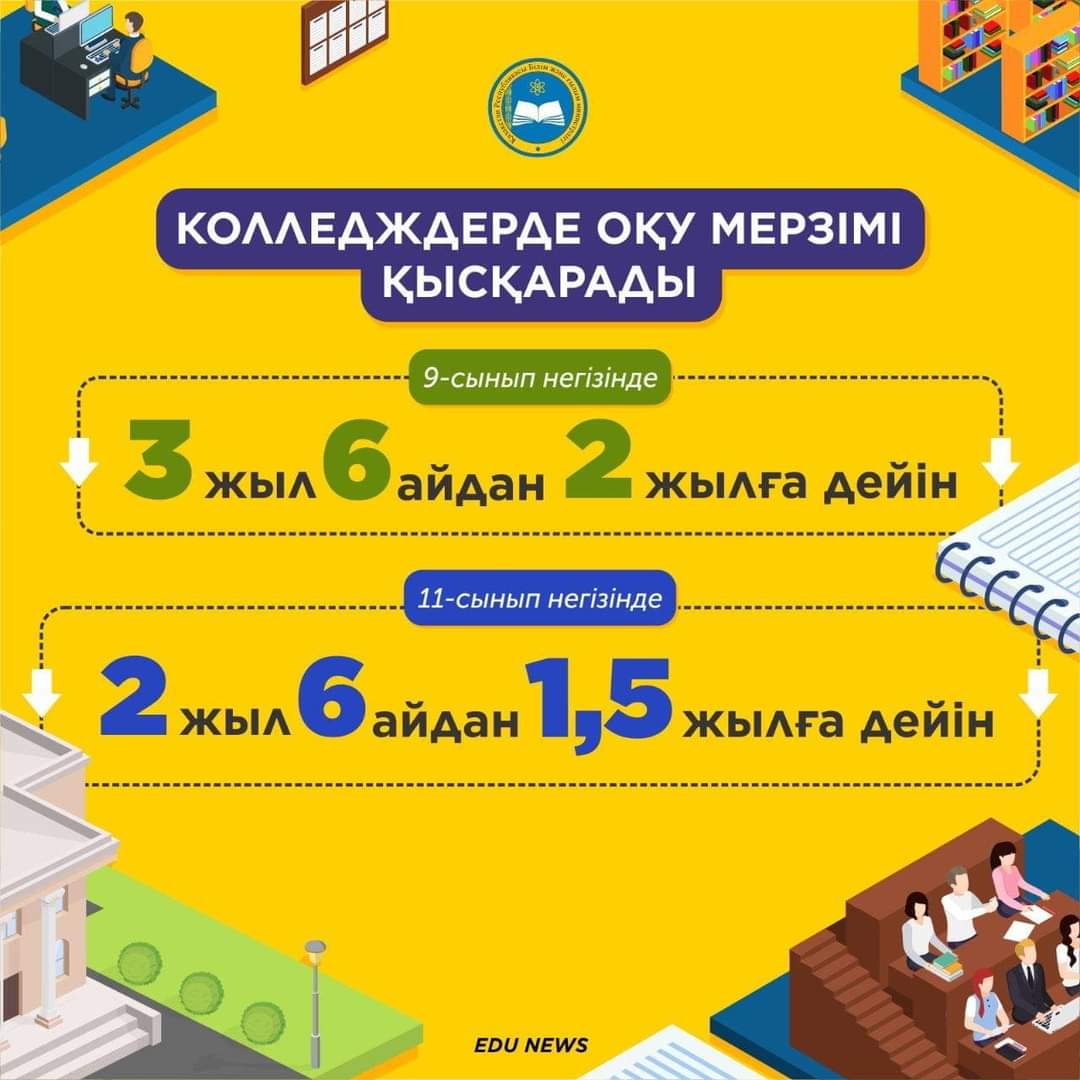 11-сыныптан кейін колледжге түскендер үшін оқу мерзімі екі жарым жыл емес, 1,5 жылды құрайтын болады.