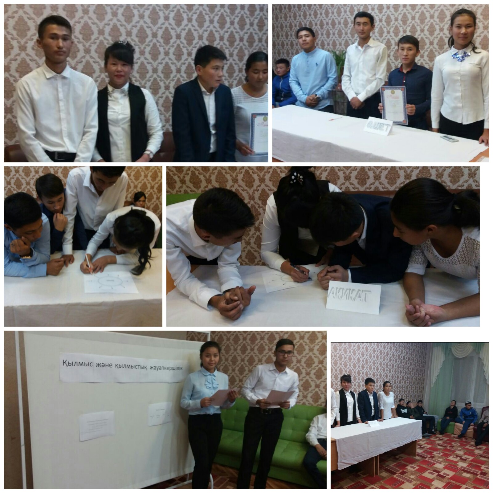 Жатақхана студенттері және тәрбиеші Мансия Амантурлықызының ұйымдастырумен «Қылмыс және қылмыстық жауапкершілік» -атты танымдық кеш өтті. Кеш барысында сайыс ұйымдастырылып, белсенділікпен қатысқан студенттерге Алғыс хаттар ұсынылды.