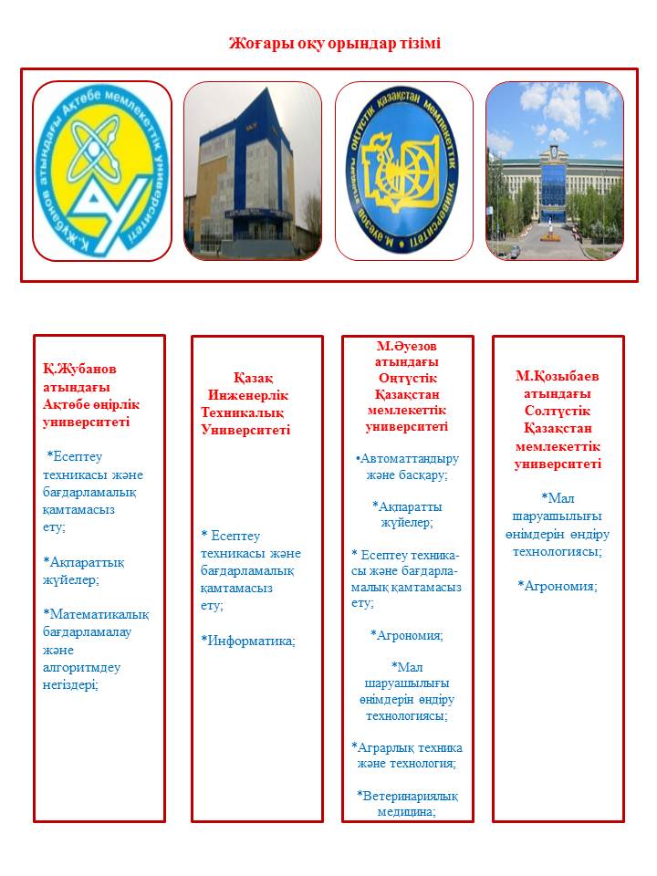 - Құзырлы органдардың мүмкіндіктерін түлектерге кешенді ақпараттар ұсынуға жұмылдыру;