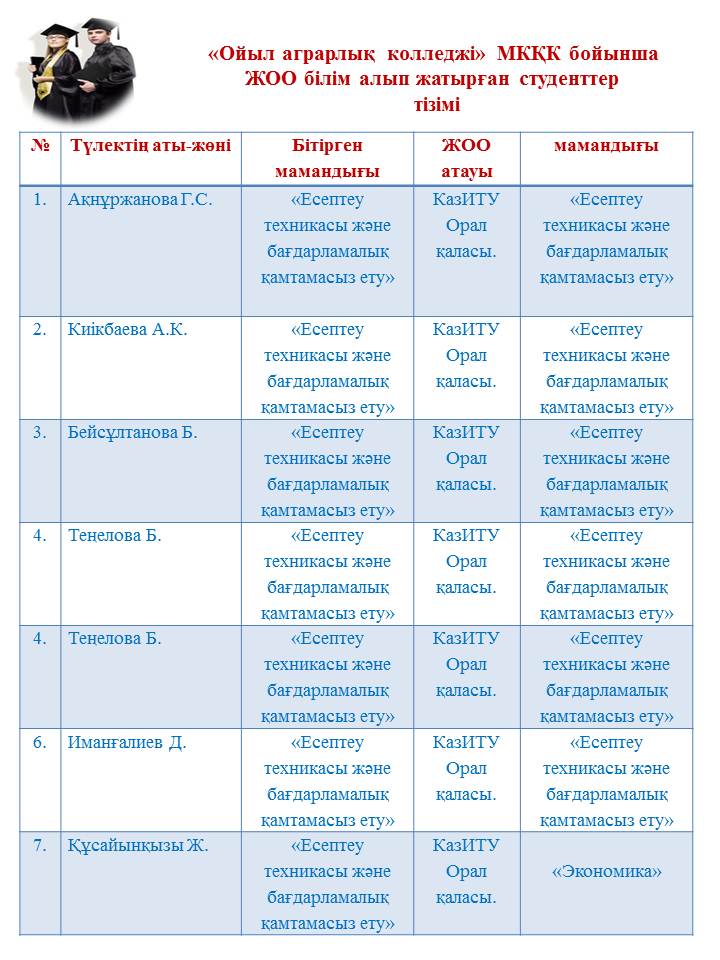 білім беру ұйымдарын бітіруші түлектерге арналған